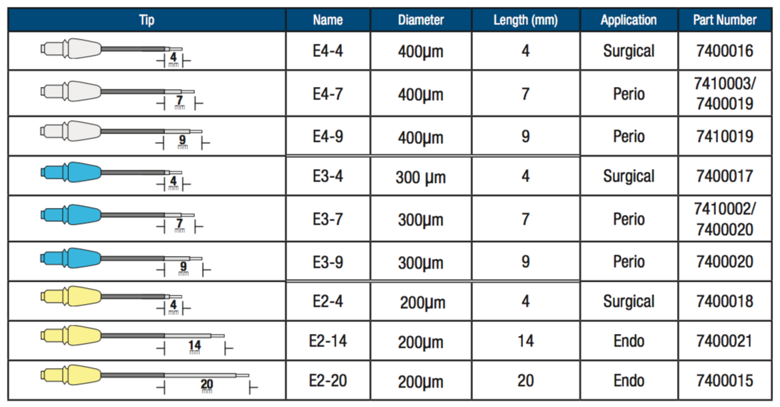 - Erineva pikkuse ja läbimõõduga fiibertipud, k.a. eeltöödeldud "pre-initiated"
