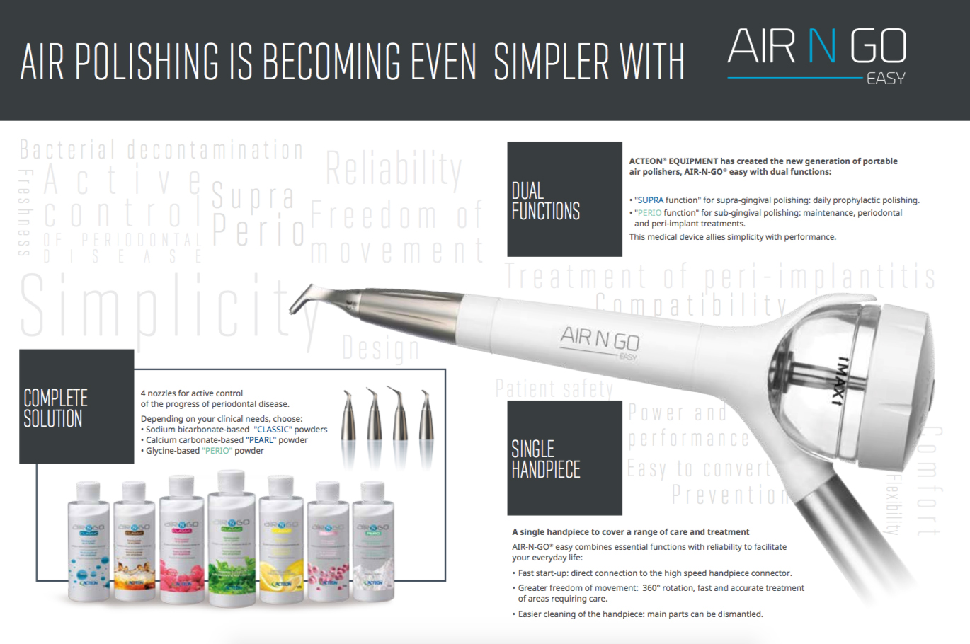 - Komplekti kuulub aparaat, LED valgusega käepide, 3 standardset instrumendi tippu, jalgpult, FLAG markeerimisvedelik